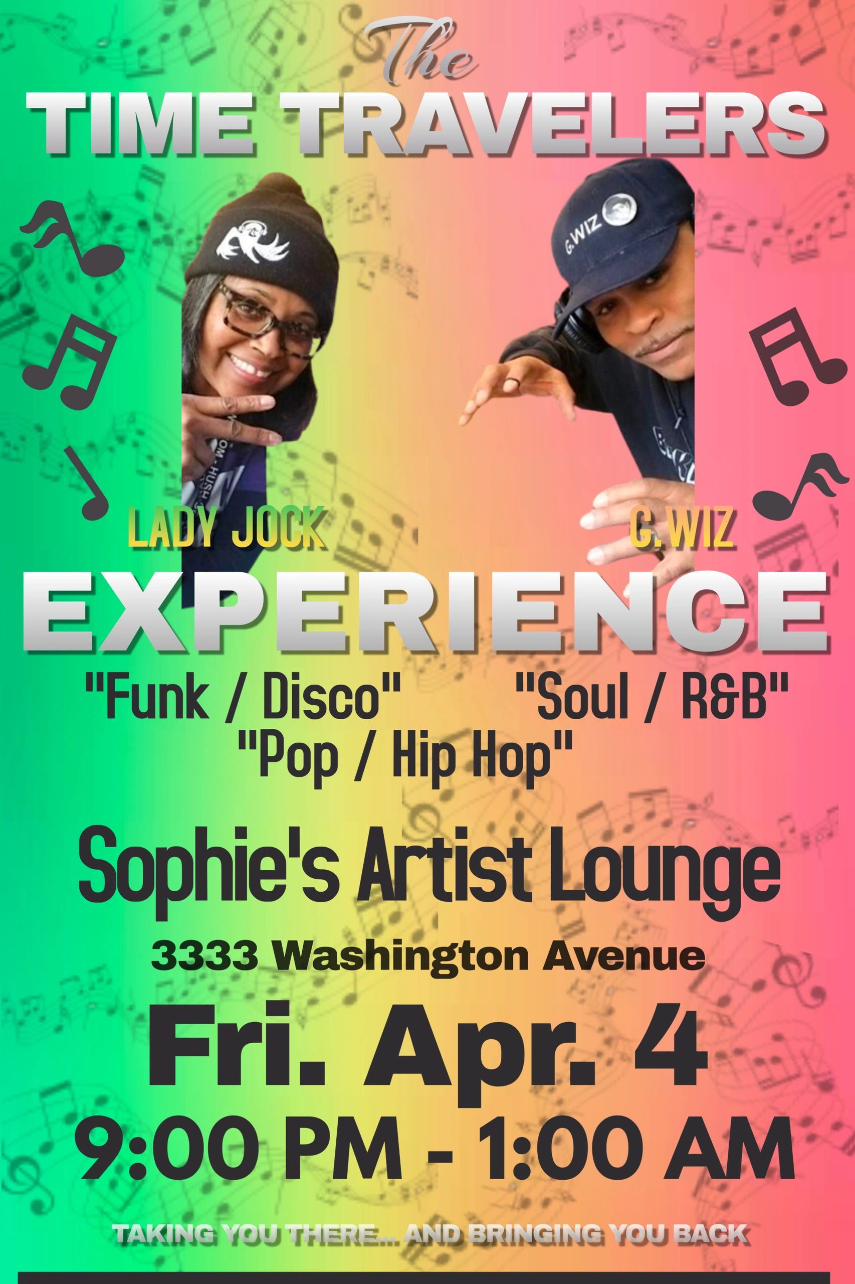 Get ready to travel through time with the dynamic duo of G. Wiz and Lady Jock @ Sophie's Artist Lounge. Fri. Apr. 4 at 9:00PM